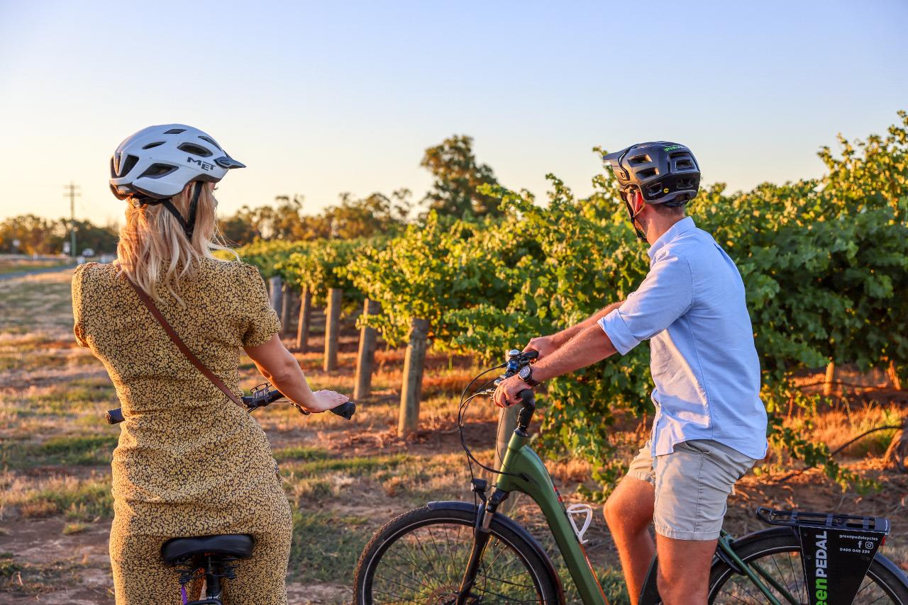 Discover the beauty of Regional Victoria''s wine country with a guided E-bike tour from Green Pedal Cycles. This unique experience offers two tours in one, starting from Murray Esplanade in Echuca and taking you through the historic Port area, over the Moama Bridge, and meandering along the picturesque route to St Anne''s Winery.