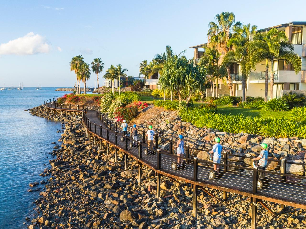 Whitsunday Segway Tours offers a unique and exhilarating way to explore the natural beauty of the Great Barrier Reef & Whitsundays in Queensland, Australia. Embark on a Segway tour along the Whitsunday Bicentennial Boardwalk, a 7km round journey that takes you from Airlie Beach, past Abell Point Marina, Shingley Beach, and the Whitsunday Botanic Gardens, all the way to Cannonvale Beach.