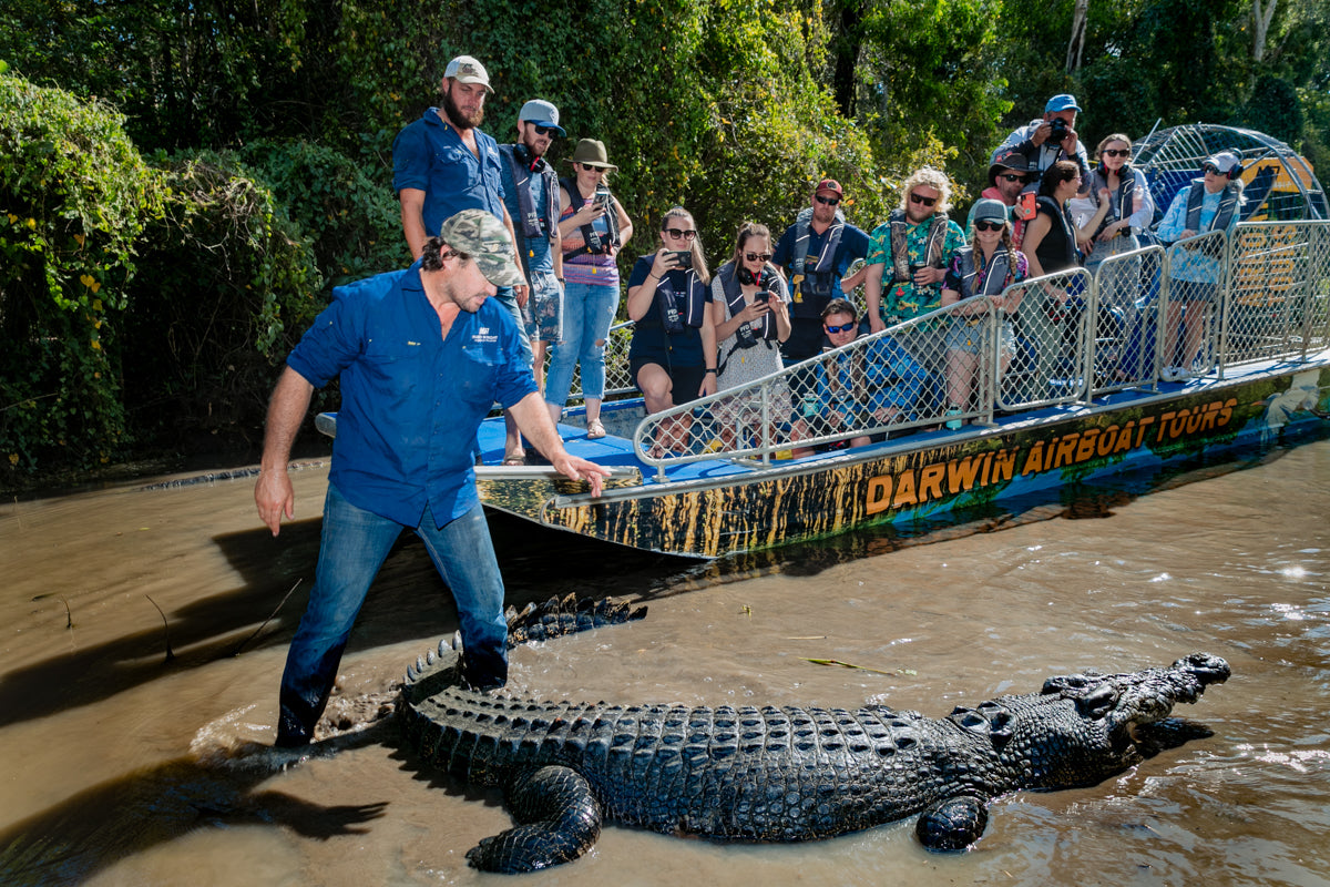 As you cruise through Sweets Lagoon on board the ''Cyclone Creek'', you will be able to take in the pristine natural environment while enjoying a hearty meal. The day tour also offers a unique opportunity to get up close and personal with one of Matt Wright''s rescued monster crocodiles, during a live feeding and interaction.